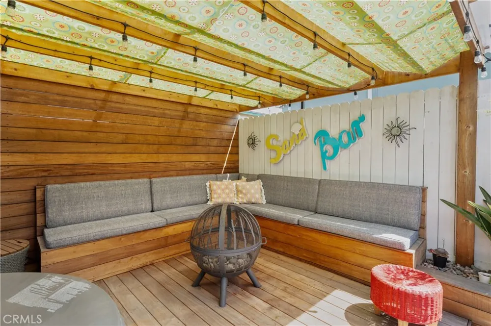 Sunny Golden Hills single-family with beachy vibes and a resort-style backyard. This light-filled mid-century modern features an open flow for easy entertaining, with beamed ceilings, a striking rock fireplace, and hardwood floors throughout. The upgraded kitchen opens to the dining and living areas, keeping everyone connected. Three bedrooms and two baths include a spacious primary suite with modern updates, plus an updated hall bath. Step outside to your private retreat: an inviting dining patio, covered cabana with built-in seating wrapped around a cozy fire pit, and an above-ground spa—perfect for unwinding after a beach day or hosting friends. A two-car garage adds convenience and storage. Moments to the sand, parks, coffee, and local favorites, this home delivers the best of South Bay living—bright, stylish, and move-in ready. Schedule your tour and feel the coastal energy for yourself.